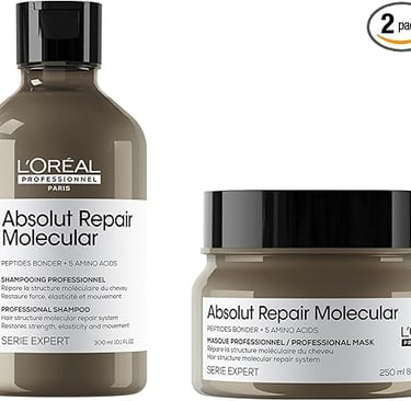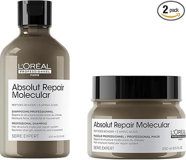 L’Oréal Professionnel Absolut Repair Molecular Sulphate Free Shampoo & Hair Mask conditioner set, For Extremely Damaged Hair, Molecular Bond Repair, restores strength & elasticity 300ml,250m