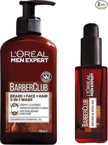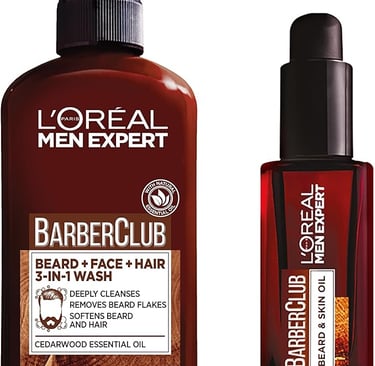L’Oréal Men Expert Barber’s Bundle Gift Set for Men, 3-In-1 Beard, Face & Hair Wash 200ml & Beard & Skin Oil 30ml, Barber Club Duo with Cedarwood Essential Oil, for All Beard and Skin Types