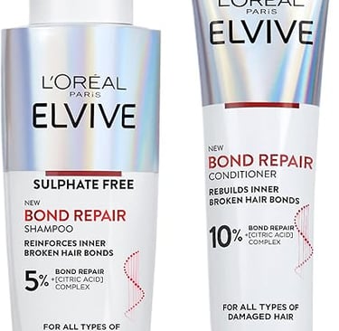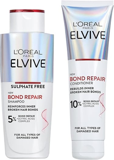 L’Oreal Paris Elvive Bond Repair Routine Set for Damaged Hair, Shampoo 200ml and Conditioner 150ml, Deep Intensive Hair Repair Treatment, Rebuild Broken Hair Bonds
