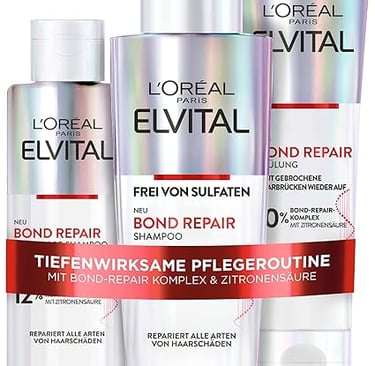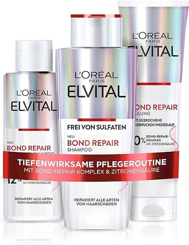 L'Oréal Paris Elvital Bond Repair Hair Repair Kit with Pre Shampoo, Shampoo & Conditioner, Bundle, Protection for Less Hair Breakage & More Shine, with Bond Repair Complex & Citric Acid 3 Piece