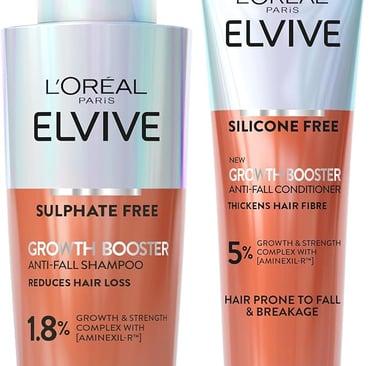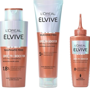 L'Oreal Paris Elvive Growth Booster Set, Anti Hair Loss Shampoo, Conditioner & Serum, Aminexil, Niacinamide & Ginger Extract, Reduces Hair Loss, 200ml, 150ml & 102ml