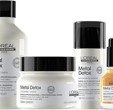 L’Oréal Professionnel Complete Routine for Damaged Hair, Serie Expert Metal Detox Shampoo, Mask, Oil with Leave-in Cream, 300 ml, 250 ml, 50 ml, 100ml Bundle Set
