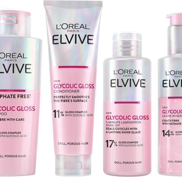 L'Oréal Paris Elvive Glycolic Gloss Shampoo, Conditioner and Rinse-Off Treatment Set for Dull Porous Hair, Get The Shiniest Hair of Your Life, Glossing Routine for Mirror-Like Shine