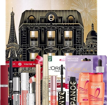 L'Oréal Paris 2025 Festive Beauty Advent Calendar, Luxurious 12-Day Gift Set Featuring Iconic Makeup, Premium Skincare, & Nourishing Haircare Favourites, A Must-Have Treat Worth Over £108