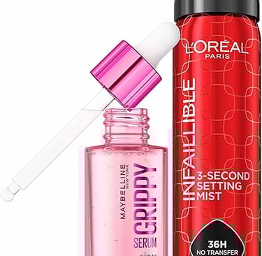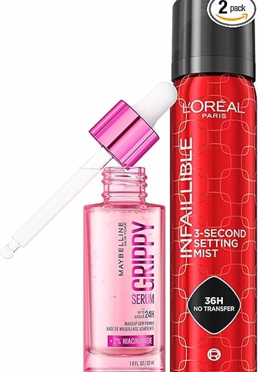 L'Oréal Paris Setting Spray x Maybelline Grippy Serum Primer Makeup Duo Bundle, Ultra-Blendable Primer, Non-sticky Setting Spray, to Grip and Lock your Look