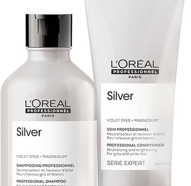 L'Oréal Professionnel Series Expert Silver Shampoo and Conditioner Set, Neutralises Unwanted Brassy Tones, For Grey, White or Light Blonde Hair, 300 ml and 200 ml