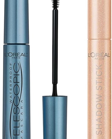 L'Oréal Paris Mascara and Eyeshadow Makeup Bundle, Telescopic Waterproof Mascara and Paradise Le Shadow Stick, Shade Waterproof Black and Mesmerising Gold