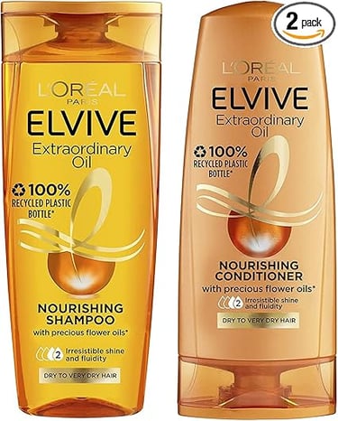 L'Oreal Elvive Extraordinary Oil Nourishing Shampoo & Conditioner Set for Dry to Very Dry Hair, 400ml bottle of each, Irresistible Shine & Fluidity