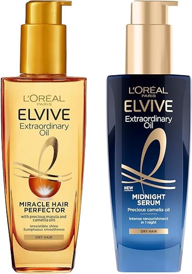 L’Oréal Paris Elvive Extraordinary Oil Nourished Hair Treatment Set, Ultimate Day & Night Routine for Dry Hair, Bundle 2 x 100ml