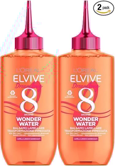 2x L'Oréal Paris Elvive Dream Long Wonder Water Hair Conditioner Laminated Liquid for Long and Straight Hair - 2x 200ml Bottles