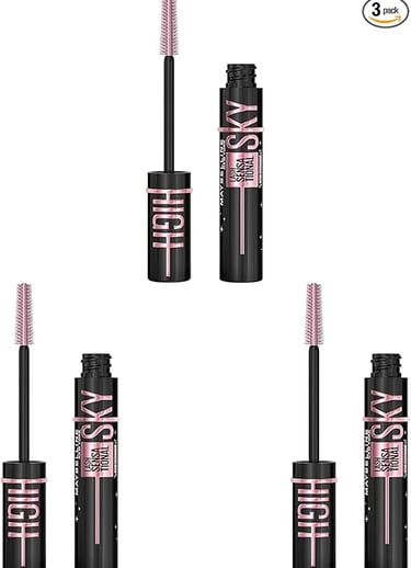 Maybelline New York Lash Sensational Sky High Mascara, Volumising & Lengthening Mascara, Washable Flake-Free Formula Infused with Bamboo Extract & Fibres, Cosmic Black, 7.2ml (Pack of 3)