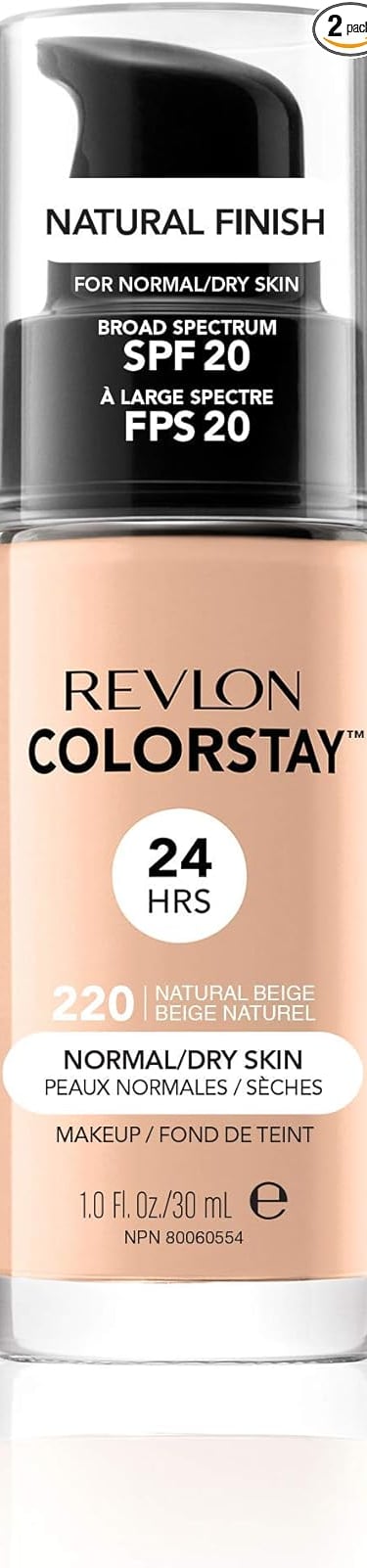 Revlon ColorStay Liquid Foundation Makeup Normal/Dry Skin SPF 20, Longwear With Medium-Full Coverage & Natural Finish, Oil Free, (220), 30ml