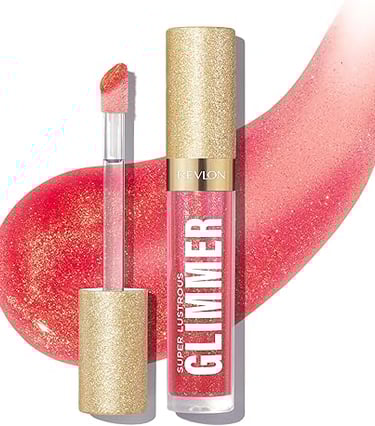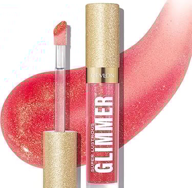Revlon Super Lustrous Glimmer Gloss – Hydrating & Plumping Lip Gloss with Plant-Based Glitter, 3D Shimmer, 39% Hydration Boost & Oversized Applicator, Haute Honey