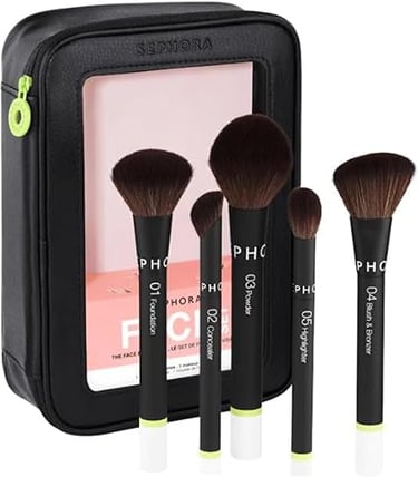 Sephora Favorites Face Set The Face Brush Set - 5 Makeup Brushes and 1 Makeup Bag